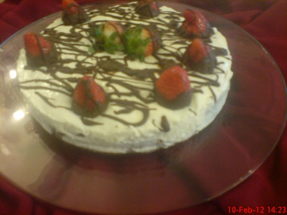 برای تزیین کیک توت فرنگیها رو تا نصفه در کاکائو زده و بگذارید تا سفت بشند و روی کیک رو با شکلات آبشده و توت فرنگی های شکلاتی تزیین کنید.