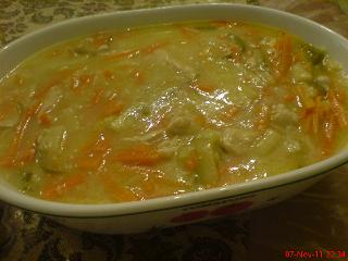 اما من به خاطر اینکه با ذائقه ما بیشتر جور باشه با کمی آب اجازه میدم تا سبزیجاتم نرم بشن و در آخر برای لعاب غذا کمی آرد به مواد میزنم. بعد از حل کردنش توی کمی آب سرد.